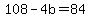 +4b+=+108+-+84+