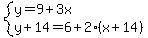 Question 979009: Lucas is 9 years older than three times his son’s age. In 14 years, the age of Lucas will be 6 years more than twice his son’s age. Find their present ages. Answer by josgarithmetic(39632) (Show Source):