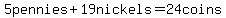2 quarters + 5 nickels + 25 pennies = 32 coins