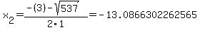Discriminant d=537 is greater than zero. That means that there are two solutions: .