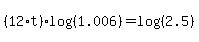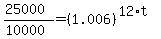 t = (ln25000-ln10000)/12(ln(1+0.006))
