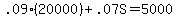 x*7%+20000*9%=5000