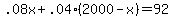 Question 773974: An investor invested a total of 2,000 in two mutual funds. One fund earned a 8% profit while the other earned 4% profit. If the investor total profit was $92, how much was invested in each mutual fund? Answer by josmiceli(19441) (Show Source):