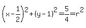 x^2-x+1/4 + y^2–2y+1 = 0+1/4+1= 5/4