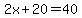 Question 1086902: joe wants to paint a rectangular region of a wall with one layer of paint. he has 40 ft of tape to tape around the border of the region he paints. He is considering three regions with widths of 10 ft, 11 ft, and 12 ft. Find the length and area for each region Answer by josmiceli(19441) (Show Source):