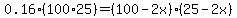 (100-2x)*(25-2x) = 0.16*100*25 (1) (the new area equation)