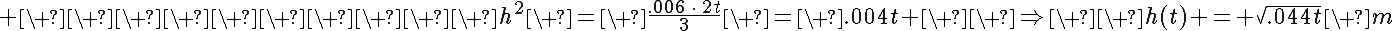 b) If water is pumped into the empty trough at the rate of 6 L/min, find the water level h as a function of the time t after the pumping begins. (1 m^3 = 1000L)