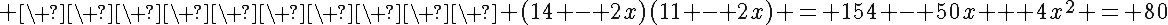 If x is the measure of the side of one of the cut out squares, then the length of the bottom of the box must be 14 - 2x, and the width must be 11 - 2x, so the area of the bottom of the box must be:
