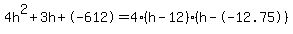 0 = 4h^2 + 3h - 612
