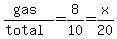You can do it in your head without an equation if you like. Just think about the ratio of 8 gallons of gas to 10 gallons total. The 20 gallons total is exactly twice as much as the 10 gallons, so the gas will be exactly twice the 8 gallons or 16 gallons. However, it usually doesn't work out this nicely. That's why I like to do it with the ratio and equation.