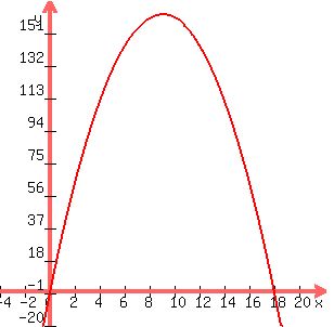 By knowing that a quadratic is symmetrical about the turning point, then roots are at x=0 and x=18, so the turning point, the maximum here, is at x=9.