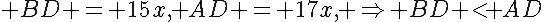 Triangle ABC has sides AB = 8, BC = 15, AC = 17. The angle bisector of C meets AB at point D. Show that the area of CBD is less than the area of CDA.