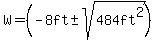 W+=+%28-8ft+%2B-+sqrt%28484ft%5E2%29+%29%29%2F2+