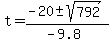 Use the quadratic formula to find t: a=4; b=-5; c=-5
