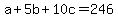 Question 962378: Jonah opens his wallet and finds that all of the bills are $1 bills,$5 bills or $10 bills. There are four more $5 bills than $1 bills.. If the total amount of bills is $246, how many $10 bills does Jonah have?
