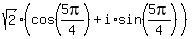 Trigonometric form  -1-i = sqrt%282%29%2A%28cos%285pi%2F4%29+%2B+i%2Asin%285pi%2F4%29%29.