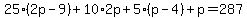 5(x)+25(2x-1)+1(x+4)+10(2x+8) = 287