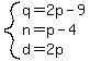 2x-1 = number of quarters (1 less than twice the number of nickels)