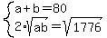 80 = a + b,  sqrt%281776%29 = 2%2Asqrt%28ab%29.    (2)