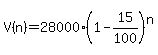 -> SOLUTION: A tractor that cost $28,000 depreciates in value by 15% after each year. Find the expected value of the tractor after 7 years.