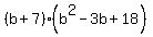 -> SOLUTION: please help what is the quotient of{{{(b^3+4b^2-3b+126)}}}/(b+7)?