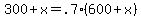 SOLUTION: a chemist has 600 ml of a solution that is half acid. she needs 70% oof acid. how much acid should she add?
