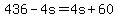 (2) +436+-+4s+=+4s+%2B+60+