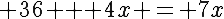 -> SOLUTION: If 36 is added to four times a number,the value is equal to seven times that number.What is the number?