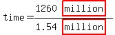 We simply divide the distance over the speed to get our answer. The "million" units cancel out and we divide the numeric portions only.