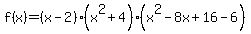Question 1085271: Please write a polynomial function f of least degree that has rational coefficients, a leading coefficient of 1, and 2,2i, 4-[6] as zeros. The brackets [] are for square roots.