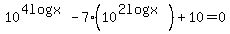 10^(4*logx) - 7*(10^(2*logx)) + 10 = 0.