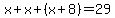 Question 113273: The length of one of the equal legs of an isosceles triangle is 8cm less than the length of the base. If the perimeter is 29cm, find the length of one of the equal legs. What I have so far is this, 4x+(2x-8)=29cm.