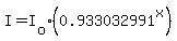 I = IoC^x ( o is the base) where 0< c<1 and Io is the amount of light at the surface