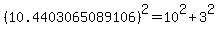 This proves that the triangle with coordinate points, (- 1, 1), (9, 1) and (9, 4) is right-angled, as it satisfies the Pythagorean Theorem/Formula.