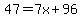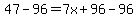 We will move "96" to the left side(by subtracting 96 from both sides)