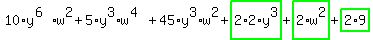 simplify_cartoon( (5y^3w^2+2)*(2y^3+w^2+3^2) )If you have a website, here's a link to this solution.  |