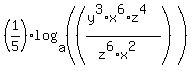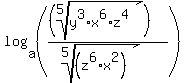 log(base a)((5th root of y^3 times x^6 times z^4)/(5th root of z^6 times x^2)