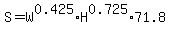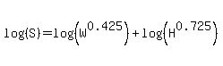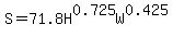 Question 276215: log10S=0.425 log10W+.725 log10H+log10 71.8