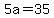 Finally, solve for a by dividing both sides by the 5 that multiplies the a. Dividing both sides by 5 results in: