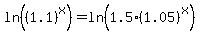 subtracting [x * log(1.05)] ___ [x * log(1.1)] - [x * log(1.05)] = log(1.5)