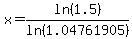 taking log ___ x * log(1.1) = log(1.5) + x * log(1.05)