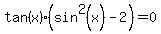 tan(x) = 0 or