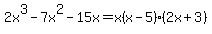 Question 627004: 2x^3-7x^2-15x factor trinomial by grouping