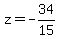 So the three solutions are , , and giving the ordered triple (34/15, 8/15, -34/15)