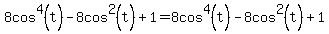 Question 677060: Please verify: cos4t = 8(cos^4)t-8(cos^2)t+1