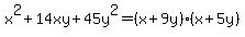 In other words, x%5E2%2B14xy%2B45y%5E2=%28x%2B9y%29%28x%2B5y%29.
