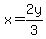 and since ratio of the two other sides to each other, x/y=2/3, gives you .
