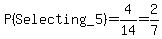 A) The probability of selecting one $5 bill is the number of $5 bills out of the total number of bills. So you have 4 $5 bills out of a total of 14. So this looks like: