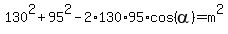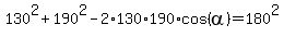Label the angle, alpha, where the 130 unit and 190 unit segments meet.