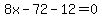 Question 786866: hagrid was doing business in hogsmeade, selling and purchasing goods. at first he doubled his money, then spend 12 galleons. he traveled further down the alley, again doubling his money, and then spending 12 galleons. on his way back to the castle he once again doubled his money and spent his last 12 galleons. how many galleons did hagrid have to begin with?